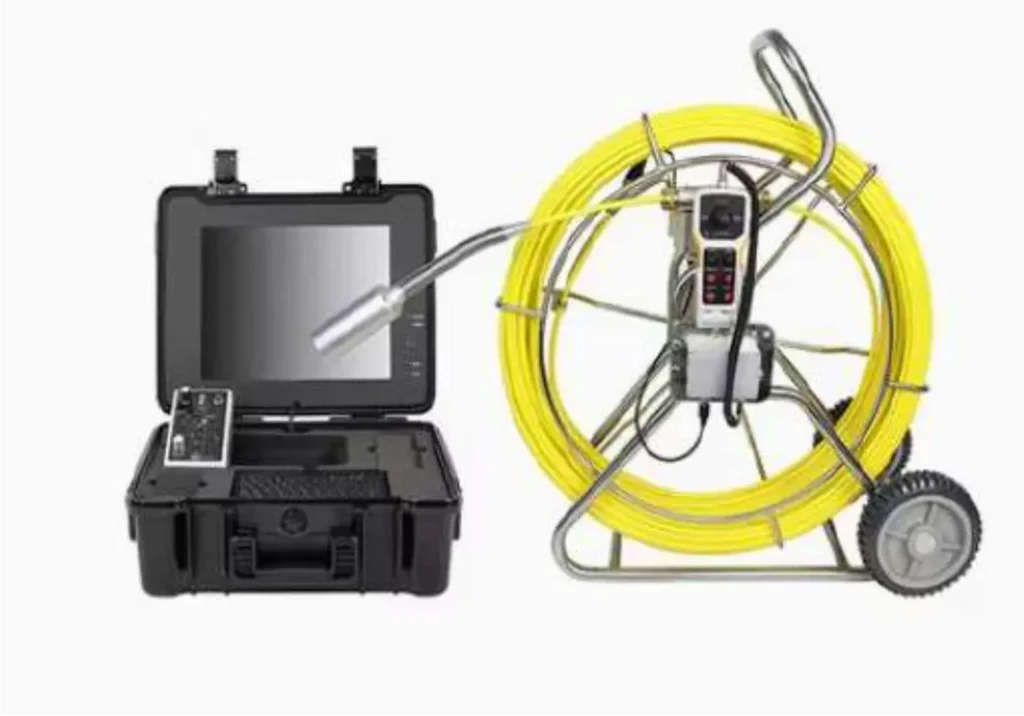 A CCTV camera push rod is used to navigate inspection cameras through pipes and drains for easy navigation and visual inspection for detecting blockages or damage.